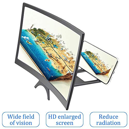 12 INCH CURVED SCREEN MAGNIFIER - 2019 new upgraded 3D curved screen amplifier, magnifies your smartphone screen display 2-4 times, perfect for watching movies and gaming, which will reduce the discomfort and visual fatigue caused by long-term focus on the small screen.