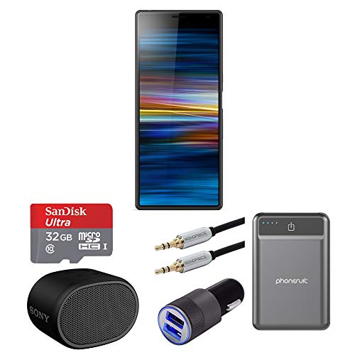 Sony Xperia 10 Plus 6.5" Dual Camera Unlocked Smartphone (64GB) Bundle SRSXB01 Bluetooth Speaker, Aluminum car Charger, Portable Battery Bank, and Extra 6ft USB-C Cable