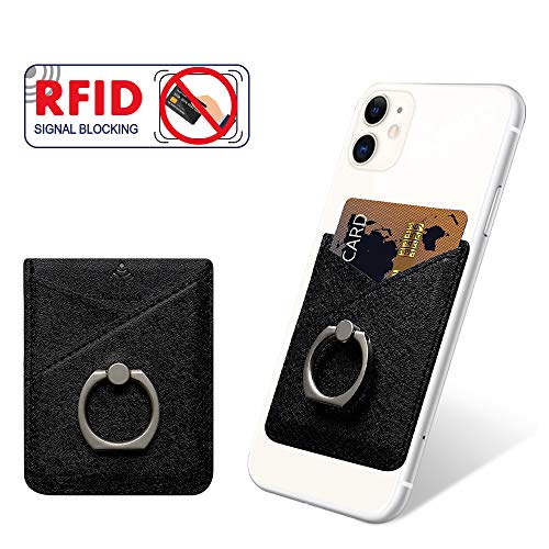 Takyu Card Holder for Back of Phone, Cell Phone Card Holder with Ring Grip Phone Wallet Stick on Phone or Case, RFID Blocking Credit Card Holder Card Pocket Compatible with Most Smartphones (Black)